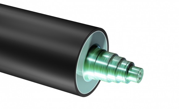 Rullo con anima in acciaio e/o Speedwell Sleeve con base conica in speciale formulato in fibra di vetro rinforzata conduttiva (Carbosleeve). Rivestimento in Neopress C Stat rettificato a misura.